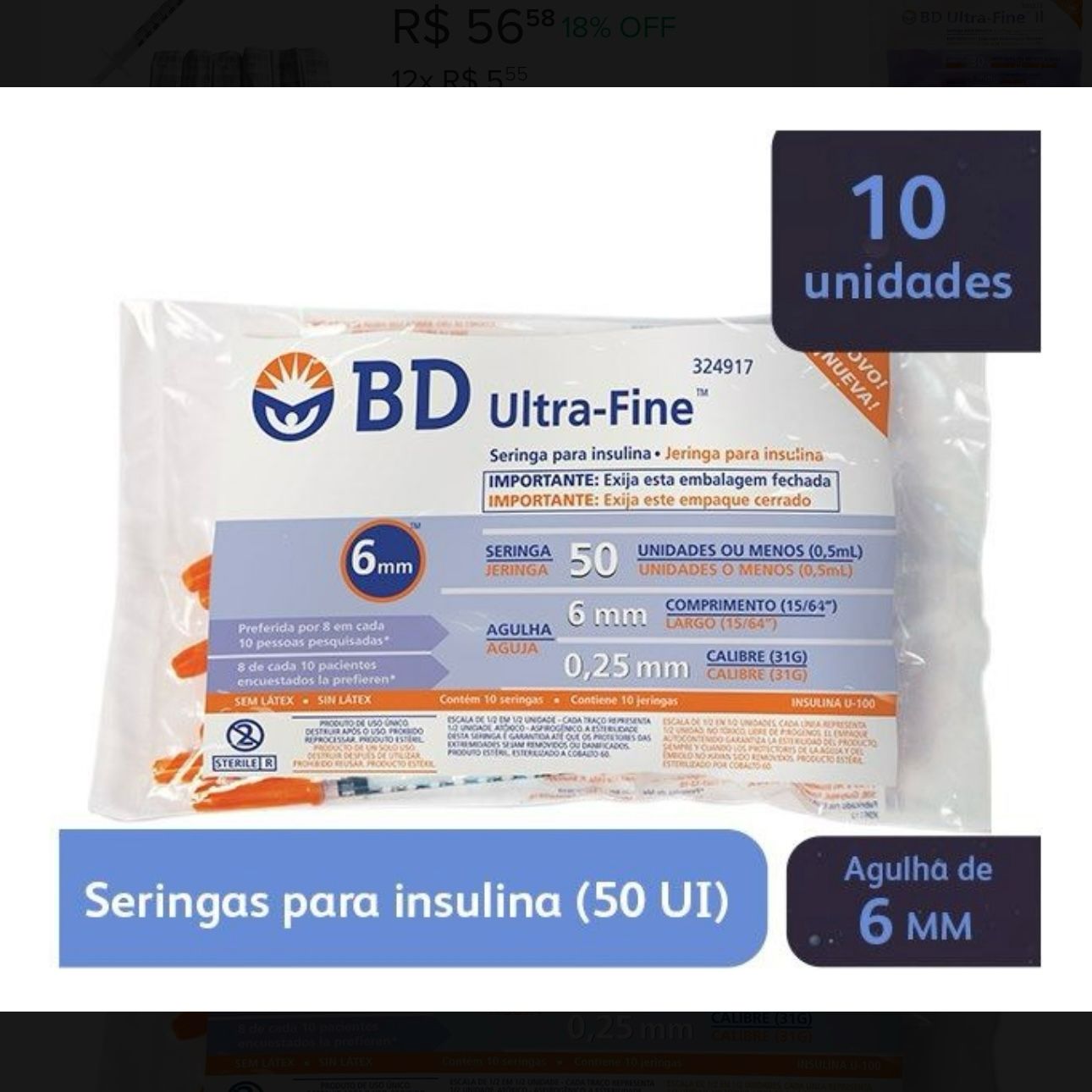 A Seringa BD Ultra-Fine™ 50ui com Agulha 6mm é uma seringa de uso único, projetada para a aplicação precisa de insulina. Com uma escala graduada de 1 em 1 unidade, ela permite uma dosagem exata de até 50 unidades de insulina. A agulha fixa (integrada) de 6mm (15/64") e 0,25mm (31G) de diâmetro, garante um uso confortável e seguro, sem espaço residual para evitar o desperdício de insulina. Além disso, a seringa possui protetor de êmbolo para maior segurança e higiene.